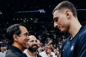 热火主帅斯波尔斯特拉现场观看了本场比赛,目前效力于塞尔维亚的热火球员尼古拉-约维奇10投7中拿下全场最高的18分,外加7篮板。